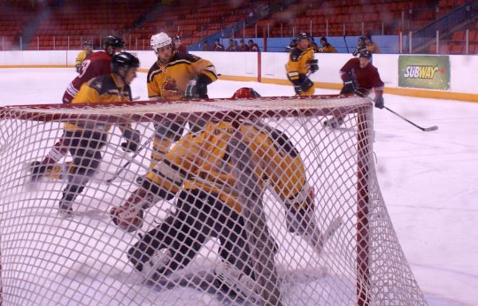 Moustache would even the score at 2 with 5:15 remaining on a goal from Glenn Dahlgren and then took the lead 28 seconds later from Jeff MacNeil.